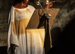 Lauréat du prix Goncourt 2021, La plus secrète mémoire des hommes de Mohamed Mbougar Sarr aborde le destin tragique d’Yambo Ouologuem. Premier écrivain africain à recevoir le prix Renaudot en 1968 avec Le devoir de violence, il sera accusé de plagiat avant de sombrer dans l’oubli. Aristide Tarnagda et Odile Sankara, figures majeures du théâtre burkinabè, lui donnent une nouvelle résonance dans cette lecture théâtrale portée par la puissance du verbe et du jeu.